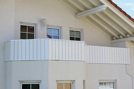 | Hier sehen Sie Balkongeländer aus Kunststoff in Weiß und in Holzoptik Golden Oak. | ||||||
